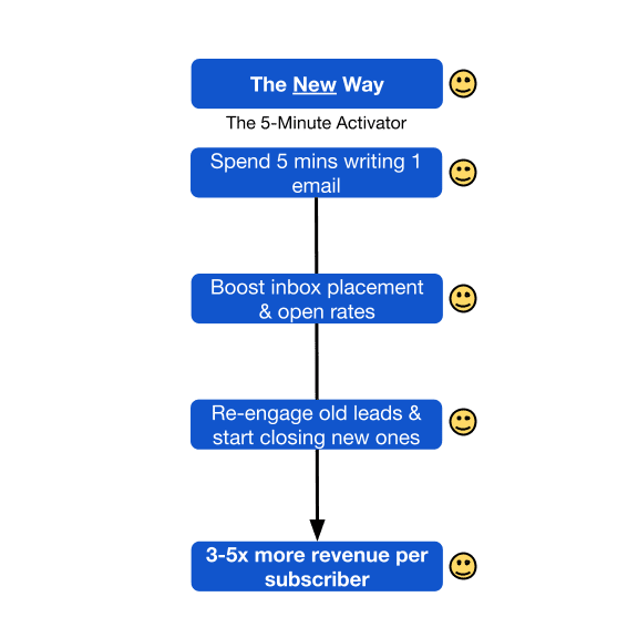 The 5-Minute Email Revenue Activator model allowed me to get rid of 99% of all the BS that I hated when it comes to email marketing and deliverability…